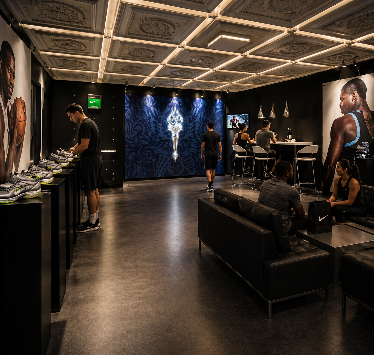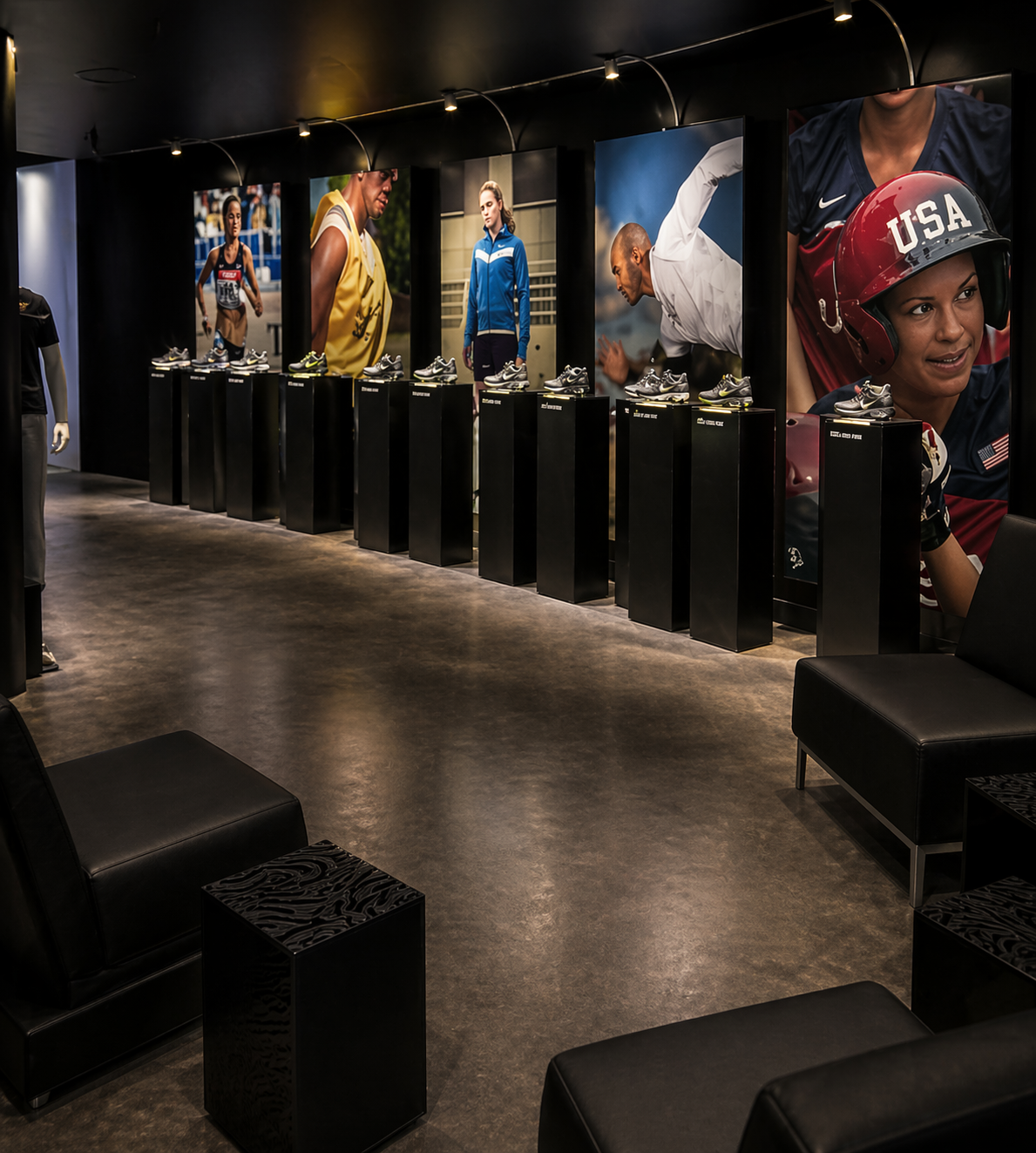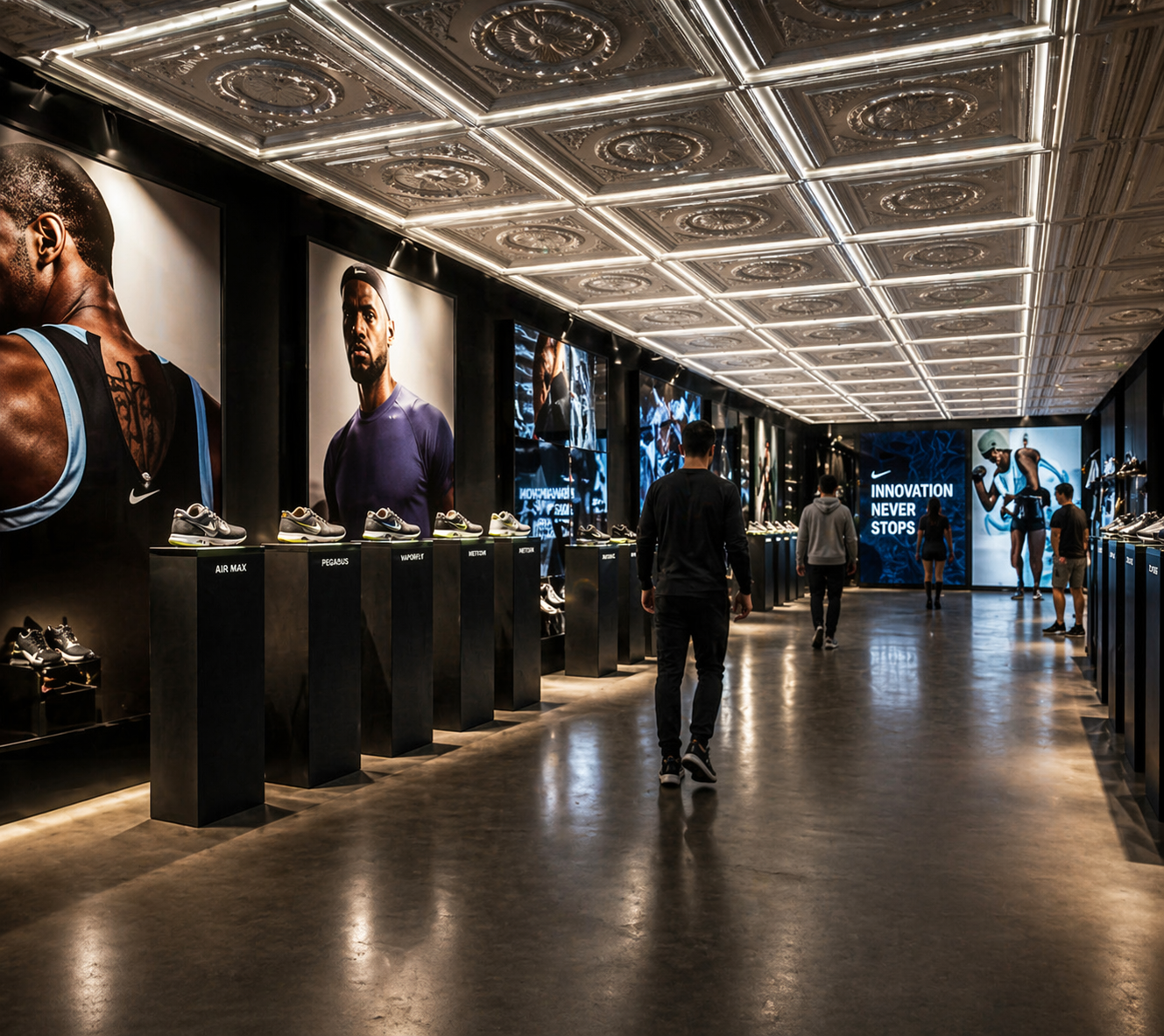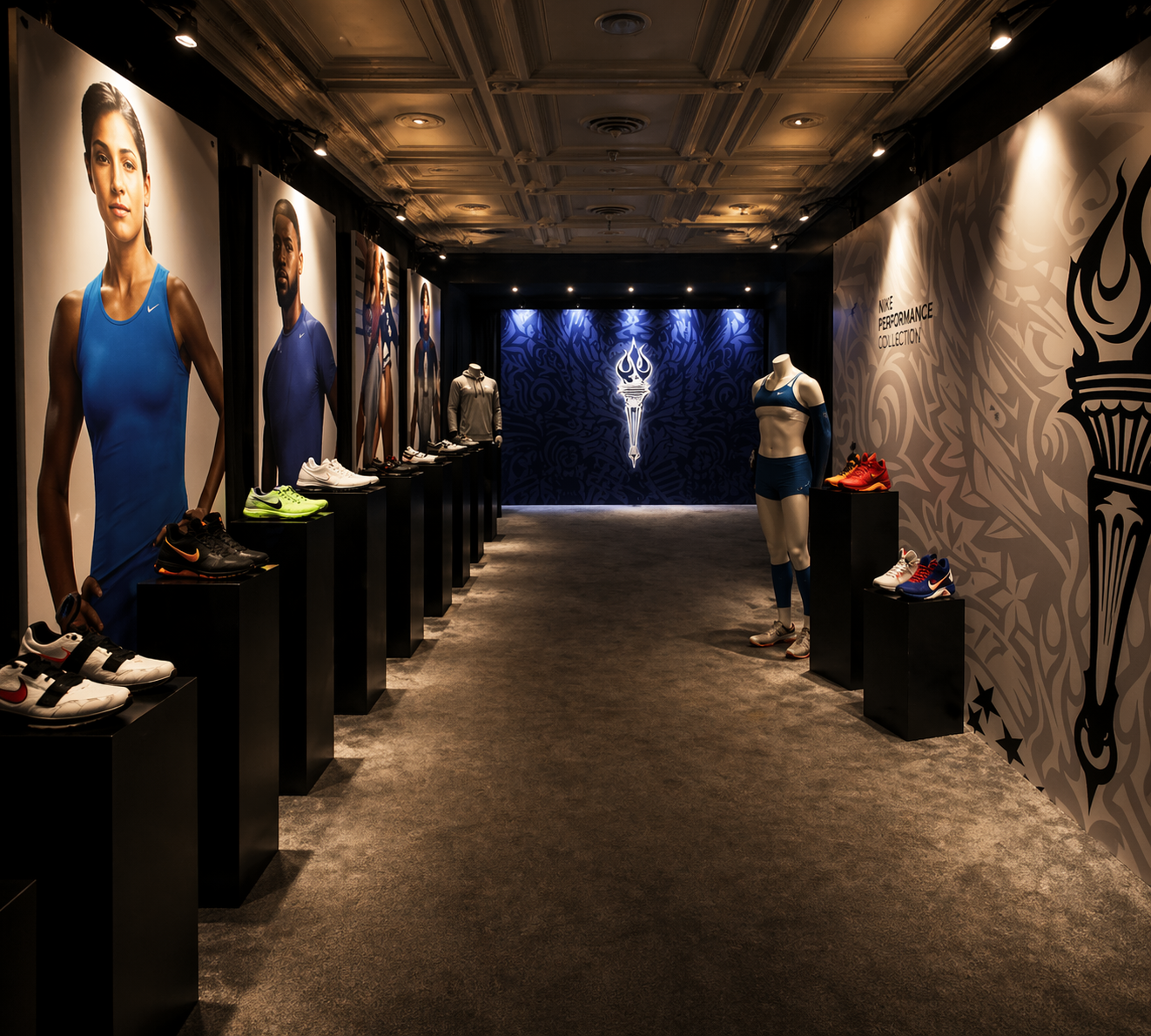 Design visualization for a concept-driven Nike innovation space exploring the intersection of product, performance, and environment.