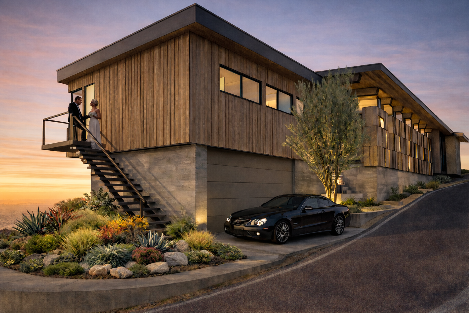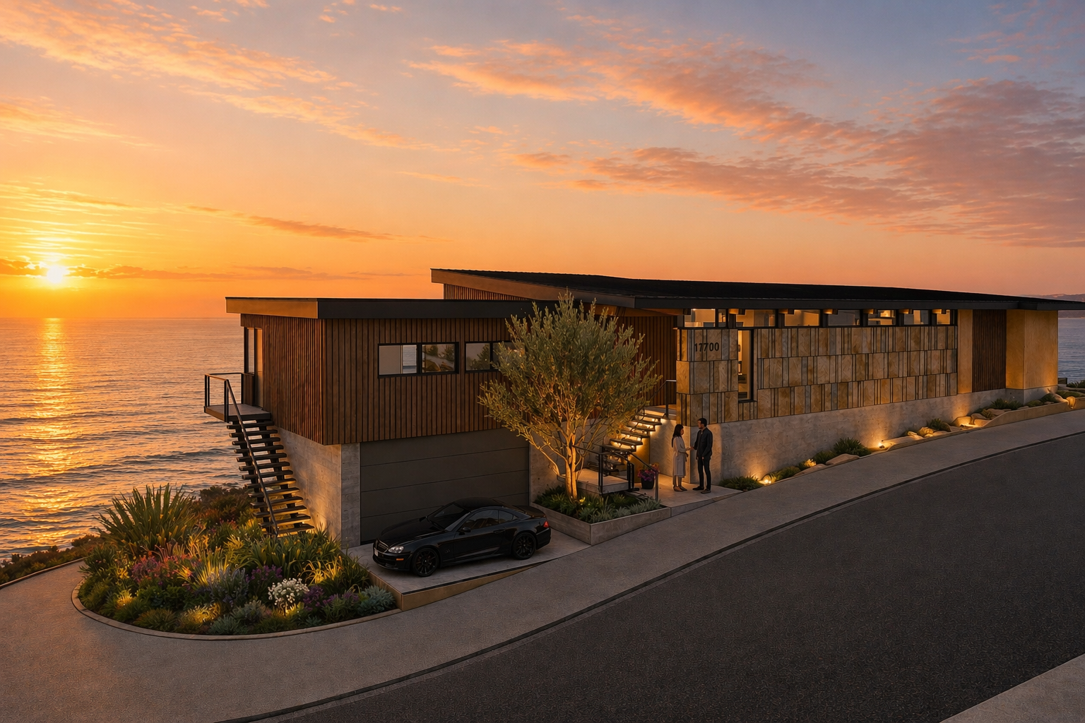 This project explores the full development of a modern hillside residence overlooking the Pacific, combining architectural design, 3D modeling, and high-end visualization into a single cohesive process.