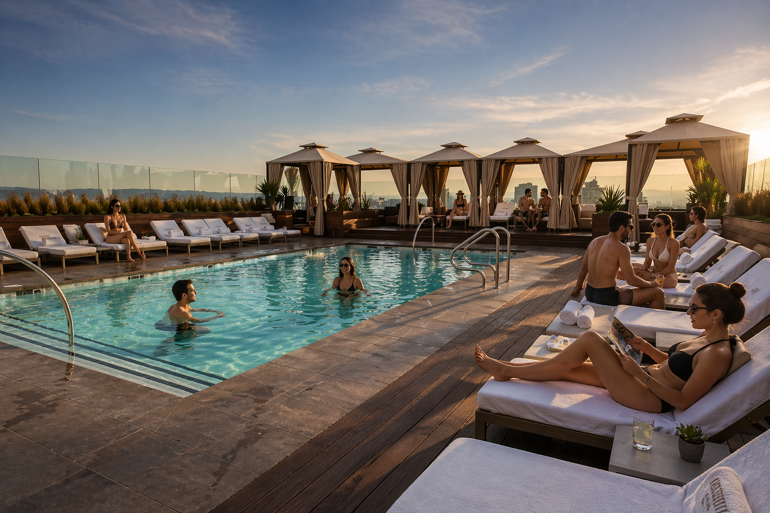 Rooftop hospitality visualization for a luxury hotel in Hollywood.
